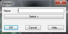 Once a category has been selected from the list, elements may be included in it by clicking on the New button. In the dialog box below, the name which will be given to the category’s element should be entered. By clicking on the Select button, the road design elements to be included in the library and the alignment’s end of origin can be selected.