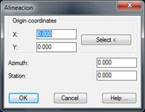 By clicking on the list of elements included in the category, a preview may be seen on the right-hand side of the dialog box. The element may be eliminated from the library by clicking on the Delete button, or it may be included in the drawing by clicking on Draw, in which case a dialogue box appears requesting the azimuth and Station coordinates for the point of origin.