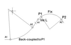 The coupled alignment extends the length calculated on the subsequent alignment. Before the next alignment, the layout elements of the coupled alignment are inserted.