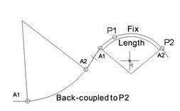 The coupled alignment replaces the length calculated on the subsequent alignment. Before the next alignment, the layout elements of the coupled alignment are inserted.