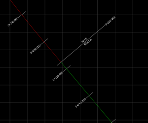 The alignment will be drawn on the CAD view as a set of polylines, one for each segment, along with its dimensions. Each segment type it’s represented with a different color, that can be adjusted on the layer configuration or, permanently, on the application’s settings.