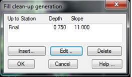 The purpose of this command is to clean up the natural land in the fill area according to a series of parameters. First, it will request the segment to be modified, then the following window is displayed to manage the type of clean-up to be carried out.
