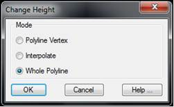 This tool allows one to change the height of any vertex on the polyline or of the whole polyline. The command has three different operating modes: