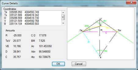 The curve type layout elements are defined by their center, initial and final angles and their radius. The latter will bear a positive sign if it moves forward in a clockwise direction or negative otherwise.