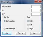 A Clearing Berm is a vector with a determined slope found before a ditch, meaning after the platform, or before the slope inclination. The two types are illustrated in the images below within the red circles.