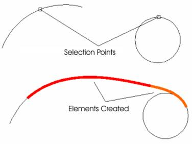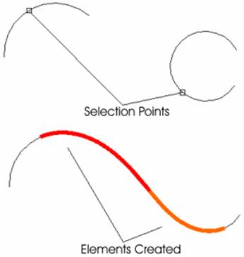This command enables a sequence of two clothoids to be inserted between two circular curves, so that the set’s initial and final points are tangential to each of the curves. The points used for the curves’ selection determine the type of solution to be calculated with a distinction being made between clothoids whose radii are of the same sign and those having different signs.