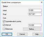 Distances: Additionally, to compare stations determined from the grade line, the desired stations can be inserted in this option with the Define button.