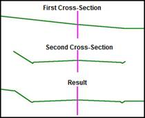 In this case, the second cross-section is inserted in the first cross-section, for which in the first cross-section the vertices common to the second profile are deleted and the second cross-section is inserted.