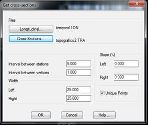 From this command we can generate a cross-section file from a profile. When this option is executed the following window will appear.