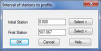 If a longitudinal profile drawn with MDT is selected, the program will automatically detect it. It will then request the file in which one wishes to save the data, though previously it will request the initial and final stations of the new profile to be generated for the possibility of selecting it on the same drawing.