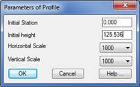 On the contrary if we select a polyline, MDT will need some additional data to generate the longitudinal profile from it. In a data window it will request the Horizontal Scale, Vertical Scale, Initial Station and Final Station Height, and then the same process as in the case of selecting a profile drawn with MDT.