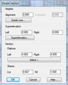 Heights: We can opt to set the horizontal alignment height or on the contrary select a grade line from which we wish to obtain each station height. In the box Increment we can set a positive or negative variation of the height in regard to that calculated from the grade line.