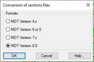 This command will enable us to convert a section file from MDT version 8.5 to version 8.0, 7.x, 6, 5 or 4.x.