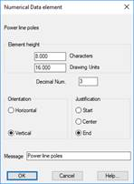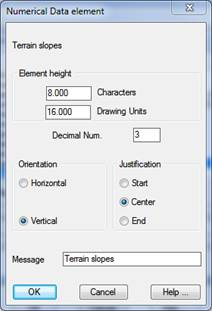 Message: Text that will appear as the element’s title on the numerical data drawing.