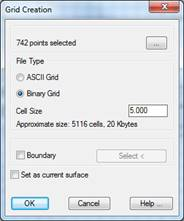 Finally, there is the option of establishing the grid created as the current surface provided that the grid file type is binary.