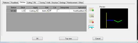 Application: The point of connection of the ditch, at the crown or foot of the roadbed. If we have defined the roadbed layers, this would give us the possibility of placing the ditch in a specific roadbed layer.