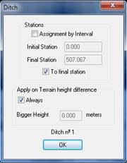When the ditch to be assigned is selected, a window appears for indicating the station up to which said ditch is to be assigned.