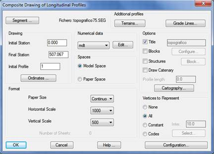 Presents a segment on screen (see Segments commands), that is to say, the possibility of drawing a complete profile containing all the information on grade line, superelevations, longitudinal profiles, curvatures, etc. If one only wishes to draw the terrain, the Profiles > Draw Simple Profile command should be used.
