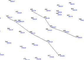 The command area of the program requests the Initial Station and the Interval (constant distance between profiles). If the latter is constant, its value is indicated. It is zero if one wishes the program to request it for each station. The selection of points on the same profile is displayed by the creation of a 3D polyline joining the points selected on the XSECTIONS layer.