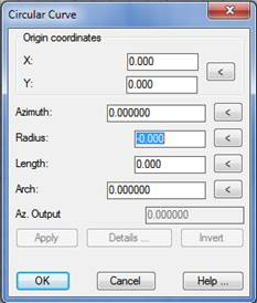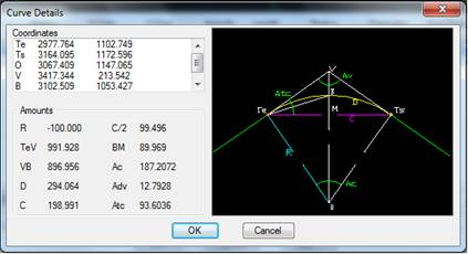 Radius: The sign indicates whether it is a curve rotating towards the left (negative sign) or the right (positive sign). When the value of the radius is edited, length is automatically modified, while the arch is maintained.