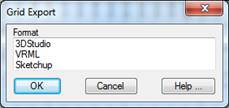 This command, by contrast, will allow us to export MDT grids to other formats external to MDT. A dialogue appears with the list of formats supported and, after selecting one of them, the program asks for two files: firstly, the MDT mesh file and finally the mesh file to be created with the selected format.