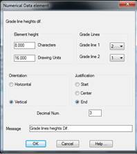 This is the same as the previous numerical data element but in this case with the grade lines. This element will only be available in the option Draw compound profile. The dialog box is displayed below with a description of its characteristics.