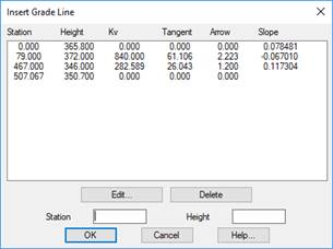 In addition to the Station and Height fields you can enter different vertices of the grade line, by just pressing the “enter” key the entered data will be automatically validated.