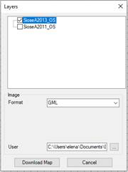 On clicking on the Next button, the program connects to the service selected from the list and another window appears in which to select the layer, in addition to the format. These options depend on the service selected.