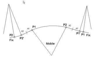 A mobile alignment is defined by its radius and the parameters of the input and output clothoids. In order to calculate it, the previous and subsequent alignment are calculated.