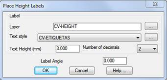 This command enables characteristics heights such as mountain passes, hills or depressions, etc. to be labeled. To do so, the following dialog is displayed: