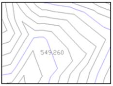 Once the parameters controlling the label’s appearance have been set, the point to be labeled is clicked with the mouse. The current surface’s height at the point appears in the command line as the height proposed for the label. This height may be substituted by another value.