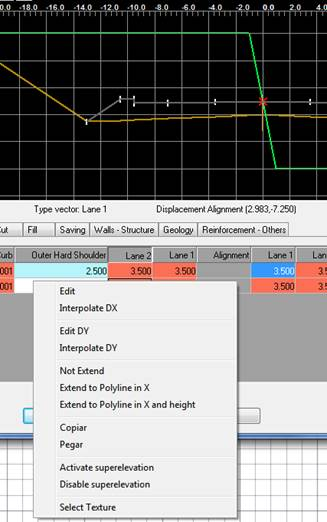 The X displacement of the vector in question can be directly introduced in the cells. To apply a displacement in Y, double clicking on the desired cell a window appears for modifying this parameter as well as other characteristics.