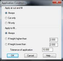Apply at cut and fill: This is to indicate whether the vector is applied according to whether it is cut only or fill only. Deciding on the vector application is the point of connection for the vector in the corresponding platform.
