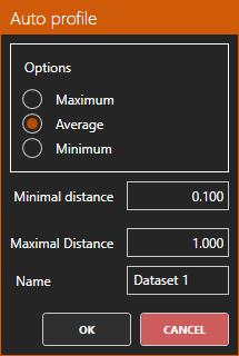 oAverage: Takes the average of the points within the band width defined by minimal and maximal distance parameters.