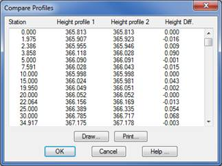 Initially it asks for the two longitudinal profiles to compare then the below window appears: