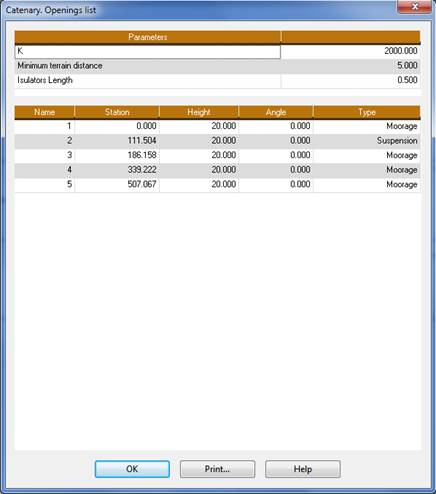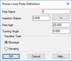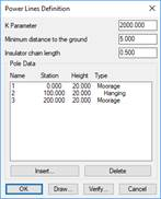 Pole data: This section enables us to define the different power line supports and posts. The Insert and Delete buttons will enable us to manage the definition of the same.