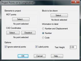 MDT points: The points that one wishes to project on the longitudinal profile are selected. For further details on the point selection command, see the Points section.
