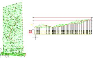 This option allows us to project a set of points on a longitudinal profile obtained in the same work or model. In order to do so, it is necessary to have previously drawn the longitudinal profile on which one wishes to project the polyline.