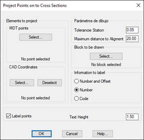 When executing the command it will ask us to select the axis of any of the cuts on which you want to project the points, then the alignment and finally we will see the next window in which we will configure the drawing configuration.