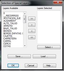 In this latter option, if the name of an element’s layer to be considered is unknown and its position in the drawing area is known, the Select button is simply clicked. At that moment, the program goes to drawing mode and the program requests objects to be selected. This operation should be executed for all of the elements selected.