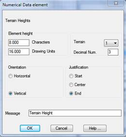 Message: Text that will appear as the element’s title on the numerical data drawing.