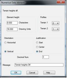 This element is of enormous use for comparing the heights between two simultaneously-drawn terrains. Immediately afterward the dialog box is displayed, and the characteristics are given.