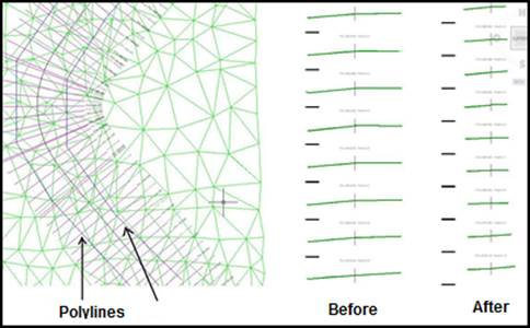 In areas with no cut polyline the cross-sections are maintained intact as they were originally generated.