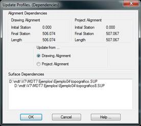 The circumstance may arise that the alignment or surface in the drawing has been modified and the corresponding file has not been modified or vice versa; in this case, the command will show a window in which the user must select from which information it wishes to automatically update the profiles.