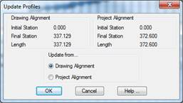 The circumstance may arise that the alignment or surface in the drawing has been modified and the corresponding file has not been modified or vice versa; in this case, the command will show a window in which the user must select from which information it wishes to automatically update the profile.