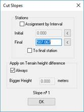 Grade line: In the latter case, a grade line is used as the reference for the extension of the slope, and on selecting this option the program will request the grade line file and will extend the slope in question to the height of the grade line in the corresponding station.