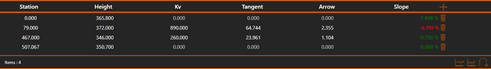 ·Kv: Node’s vertical curve. It can be edited by double clicking it, it can only be confirmed if the new Kv doesn’t provoke an overlap.