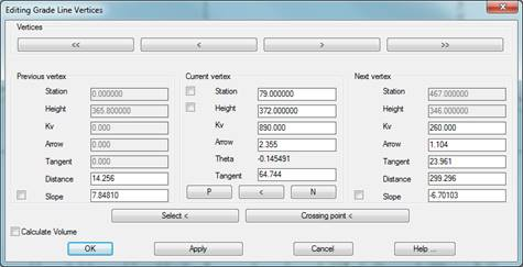 Height: Grade line’s height at the vertex. If this value is changed, the vertex of the edited grade line will be adjusted in Y.