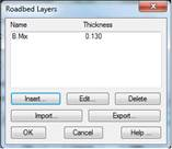 To carry out this definition when editing the vector properties, a window is displayed in which by pressing the button Roadbed Layers we can specify the characteristics of each of the roadbed layers for the vector in question.