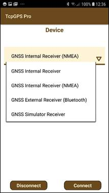·GNSS Internal Receiver: Use of the device’s internal GPS. Some new devices have the possibility to use the NMEA format to manage locations. In that mode, the device’s internal GPS and the NMEA format will be used. Additionally, a set of models of different brands is available for connecting with these receivers that needs an external application for receiving the GNSS data.